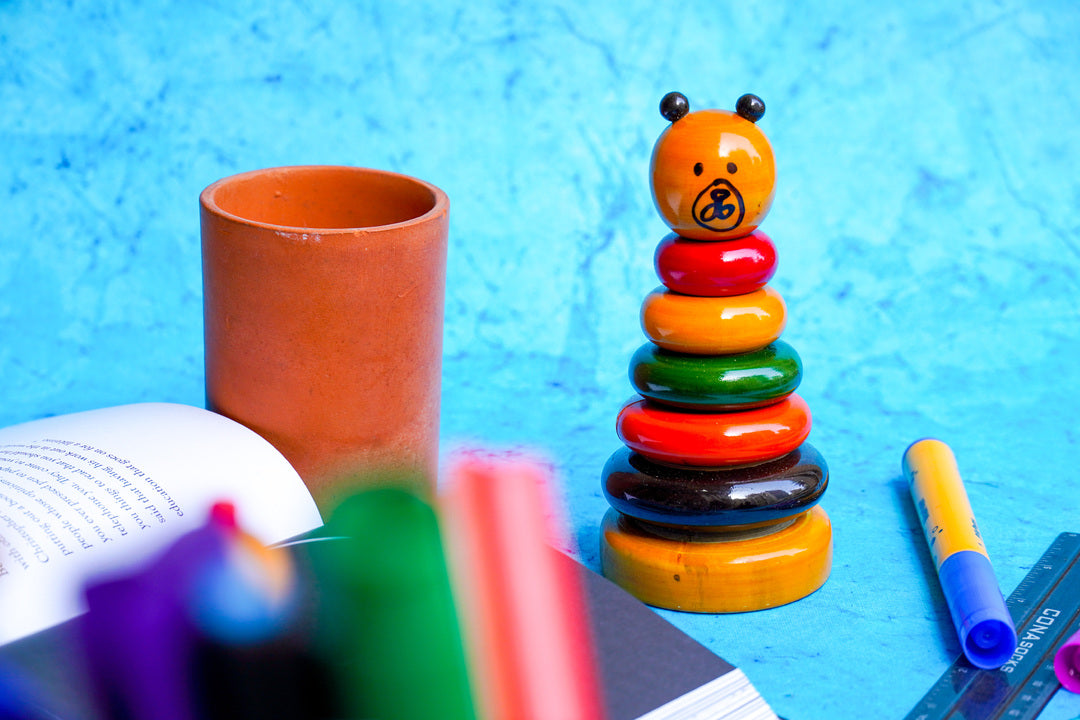 Stackers are a great way to keep your toddler engaged and in turn improve their logic and tactile skills. This cute little bear stacker is sure to serve all these purposes plus make for a beautiful addition to the nursery. It is made with organic lacquer and safe for newborns too.