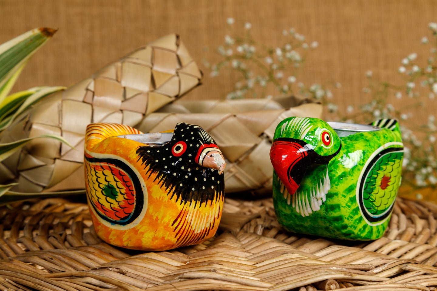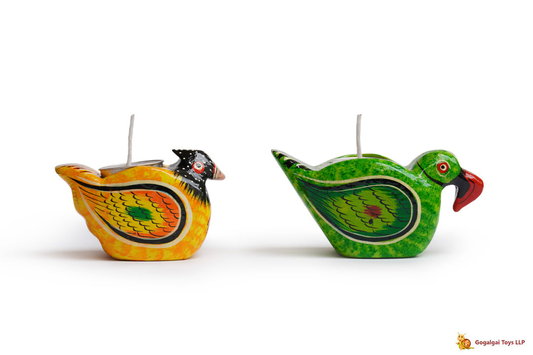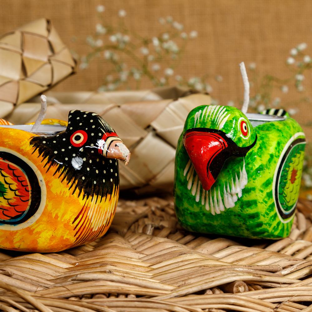 Bring in the beauty of these colorful birds to your home and make a statement. These beautifully crafted Wooden Tea light holders are a perfect addition to your spaces adding warmth wherever they are placed.