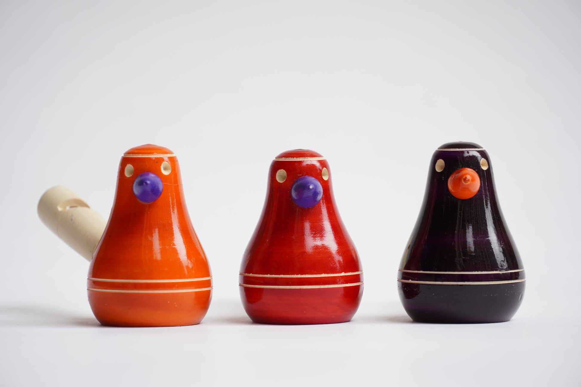 A sweet little birdy whistling can be pretty intriguing for your young kids and adults alike. Its a wooden toy with a simple design, child safe organic lacquer colour and minimal details that make it perfect for introducing new sounds to kids.