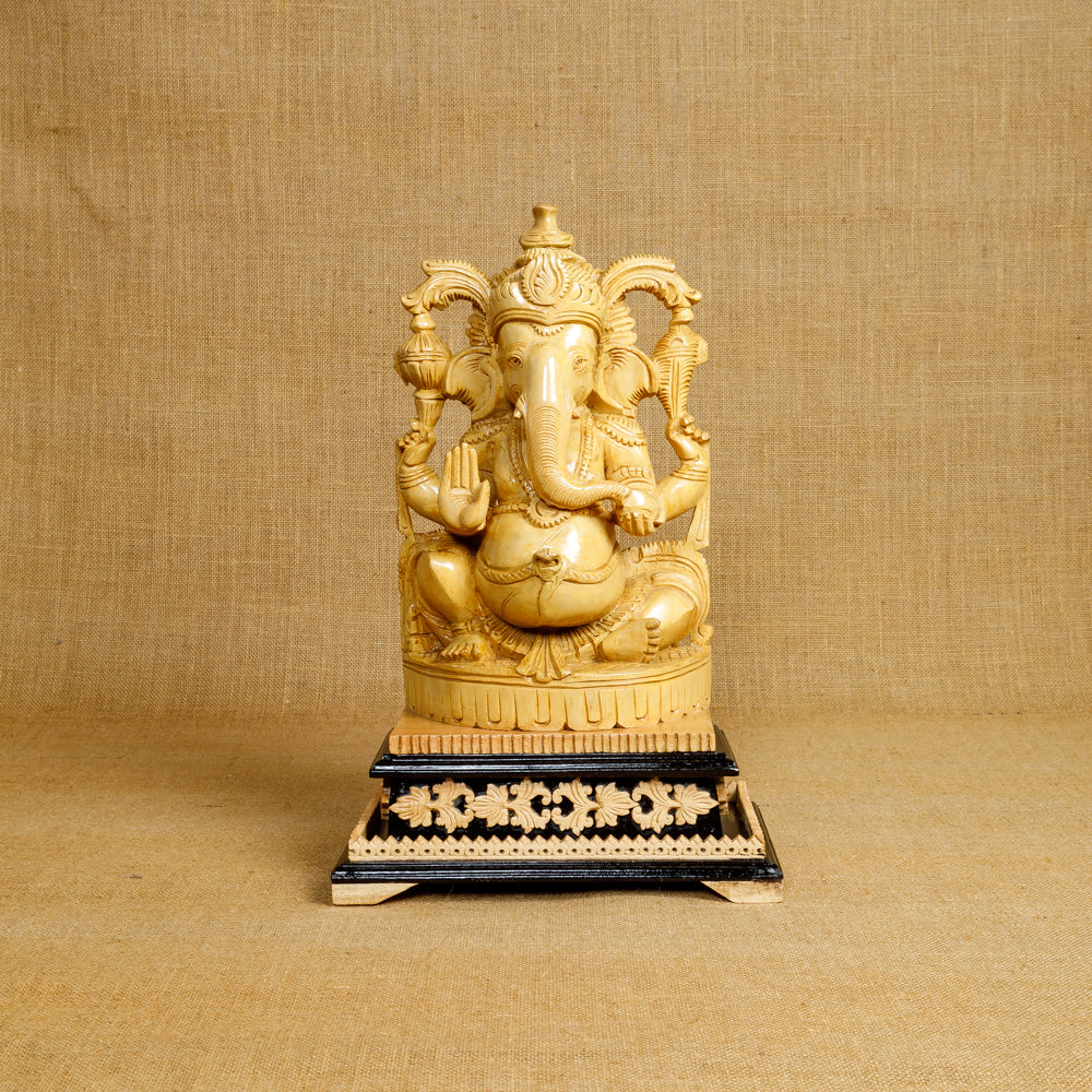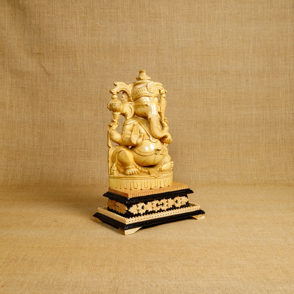 This elegant Ganapati idol is delicately carved out of the aromatic sandalwood which reflects the splendor & grandeur of Indian Traditional handmade wooden Art.
