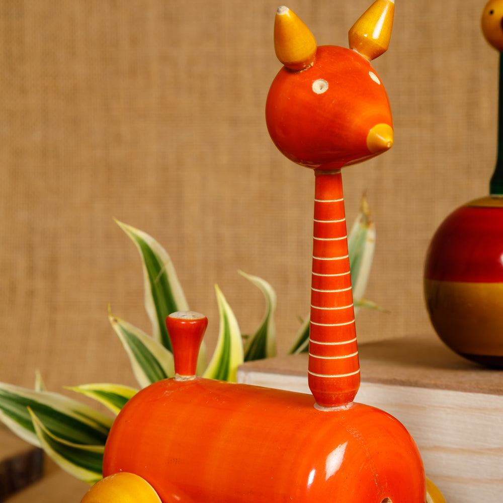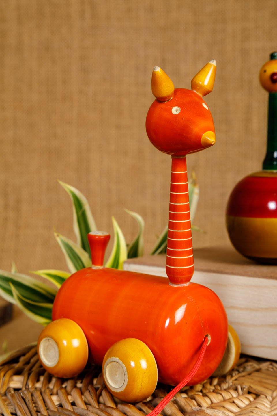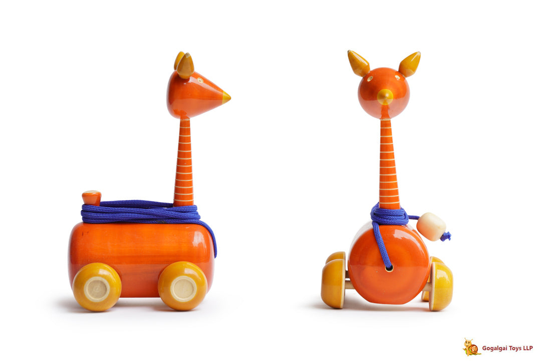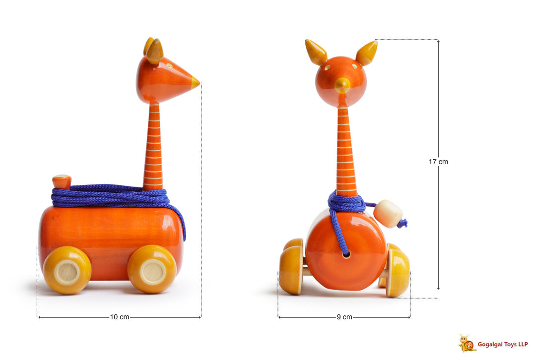 This beautiful Giraffe Push and Pull toy, is made with wood and hand painted with lacquer colors. It has a soft thread for toddlers to catch and push/pull the toy, while learning to build their locomotor skills and hand-eye co-ordination. Lovely learning toys for babies and toddlers.