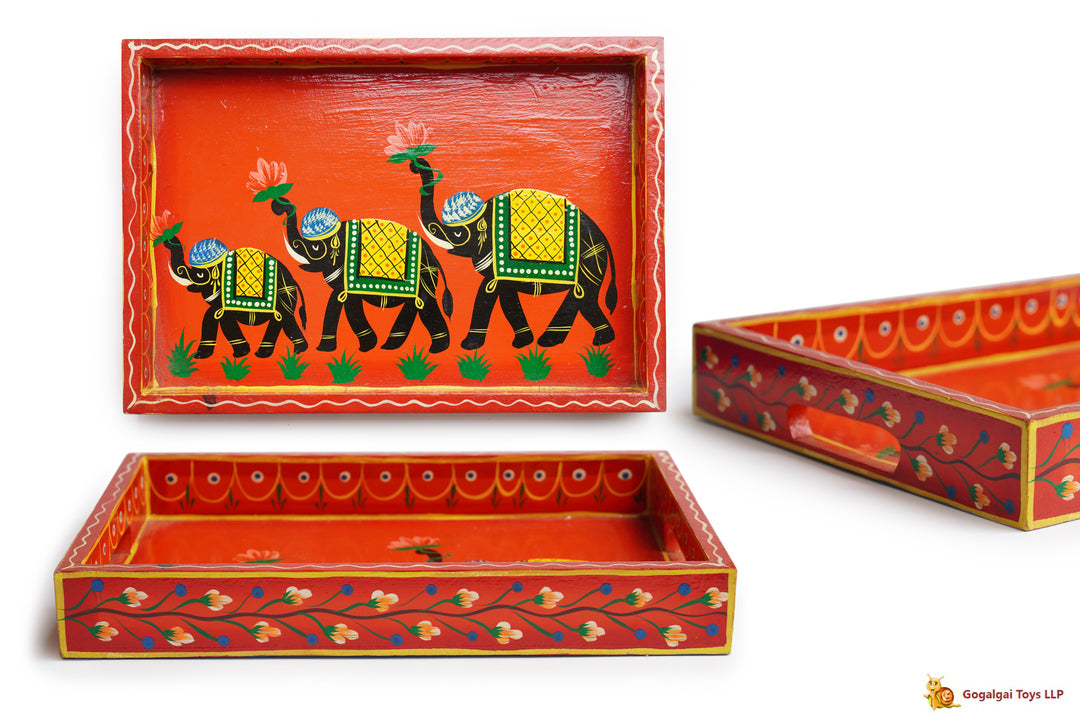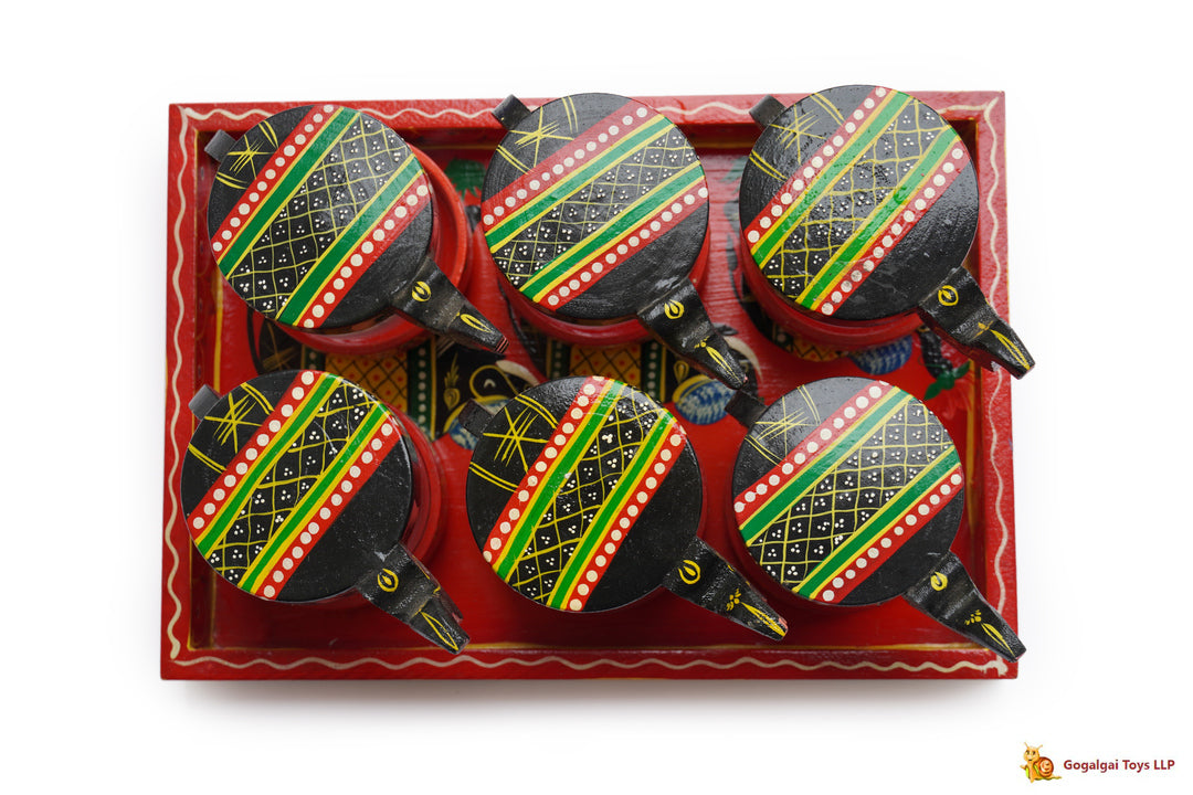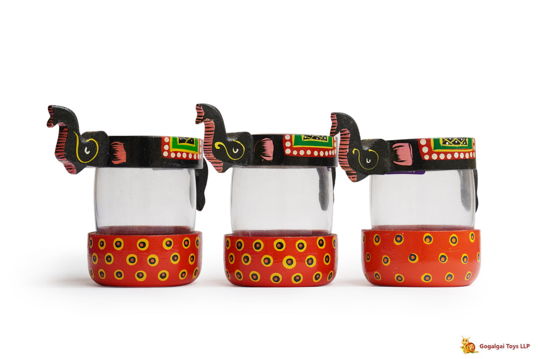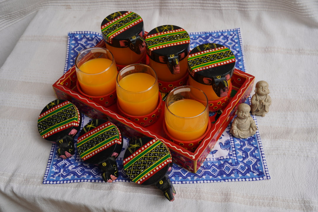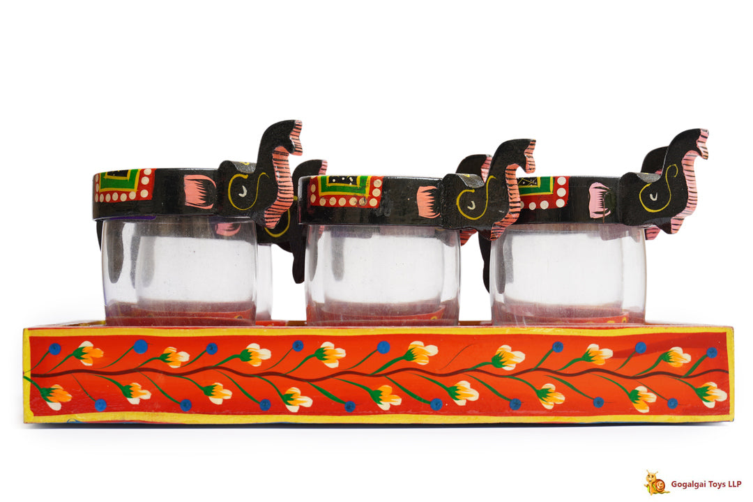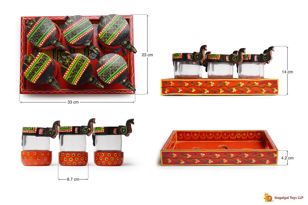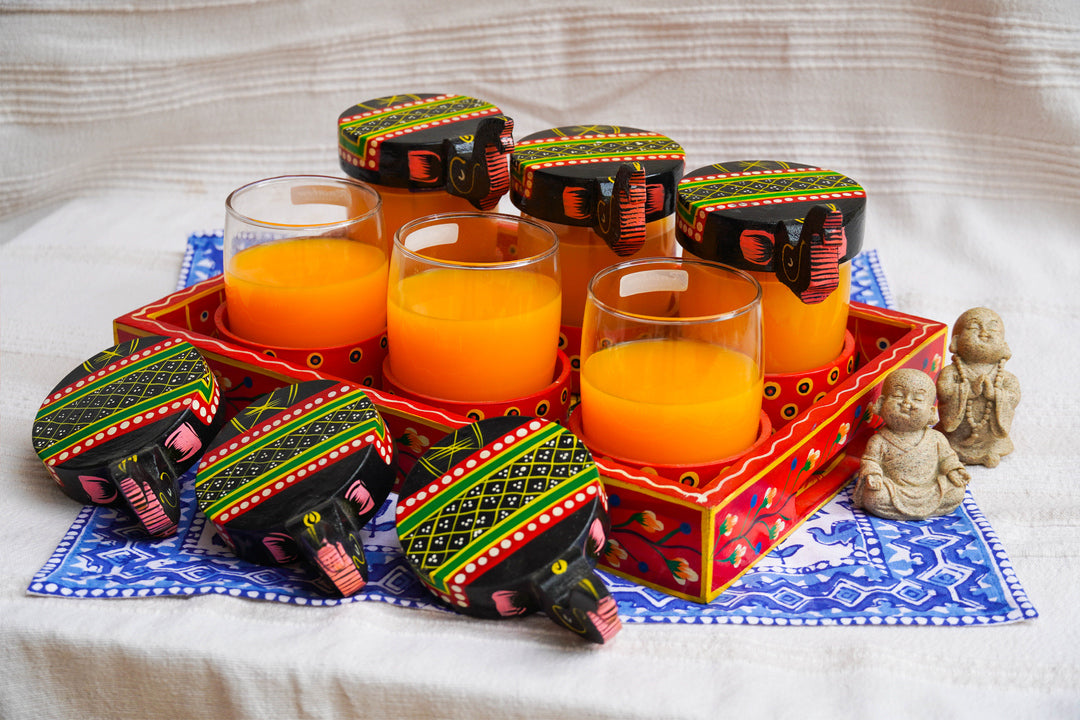 Glass Set With Wooden Elephant Lid and Wooden Tray