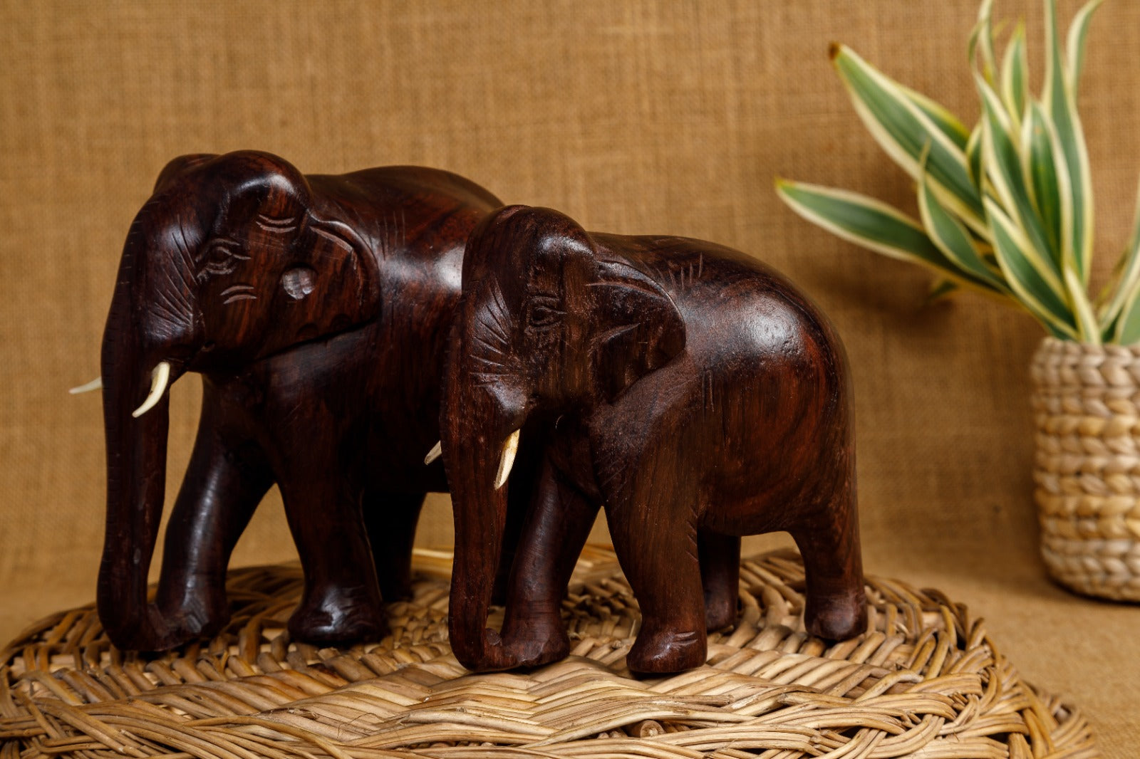 Each wooden elephant is carefully carved from high-quality, sustainable wood, ensuring not only a visually captivating piece but also one that aligns with ethical and eco-friendly principles. The intricate details of the carving capture the essence of these magnificent creatures, from the texture of their skin to the gentle curve of their tusks.