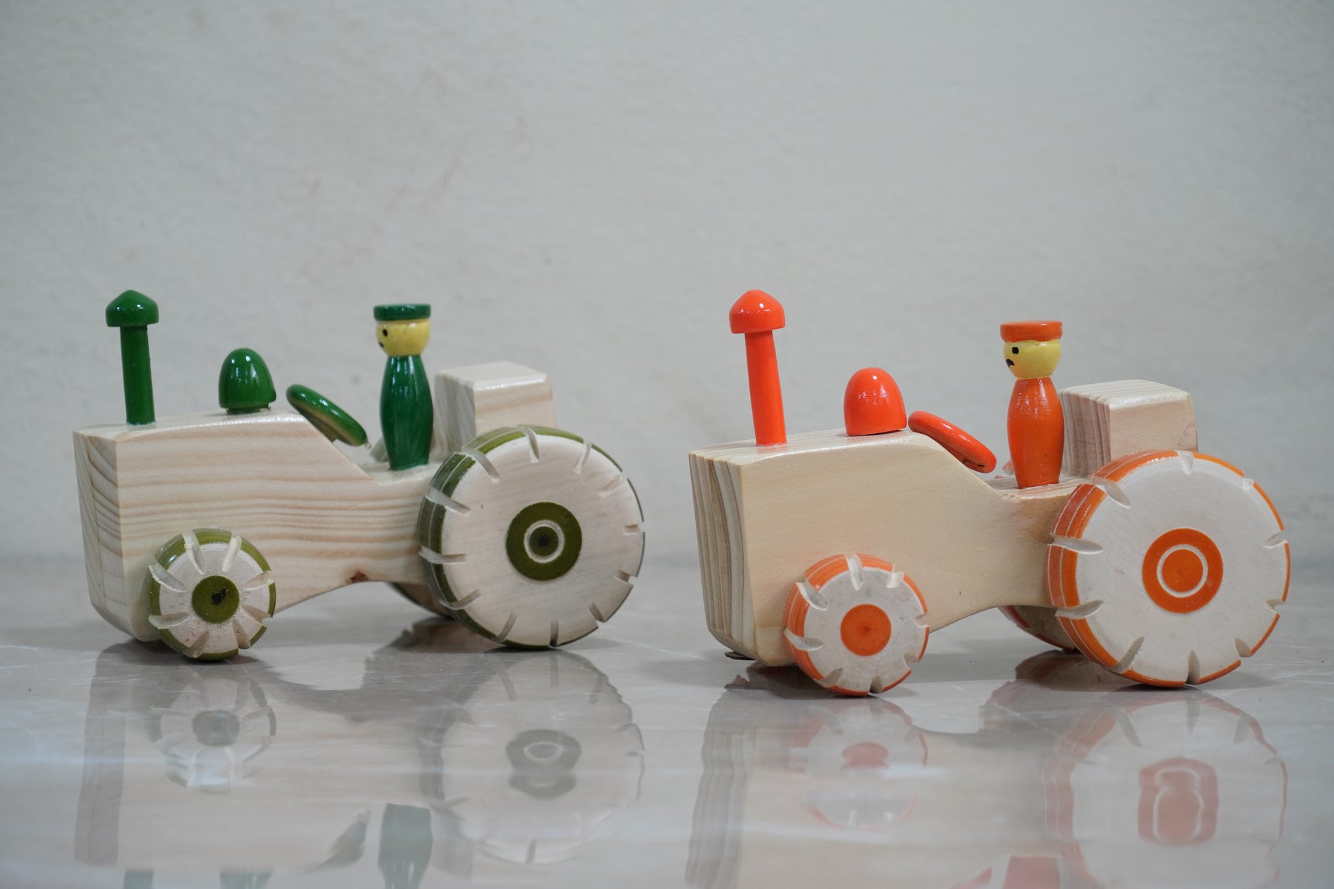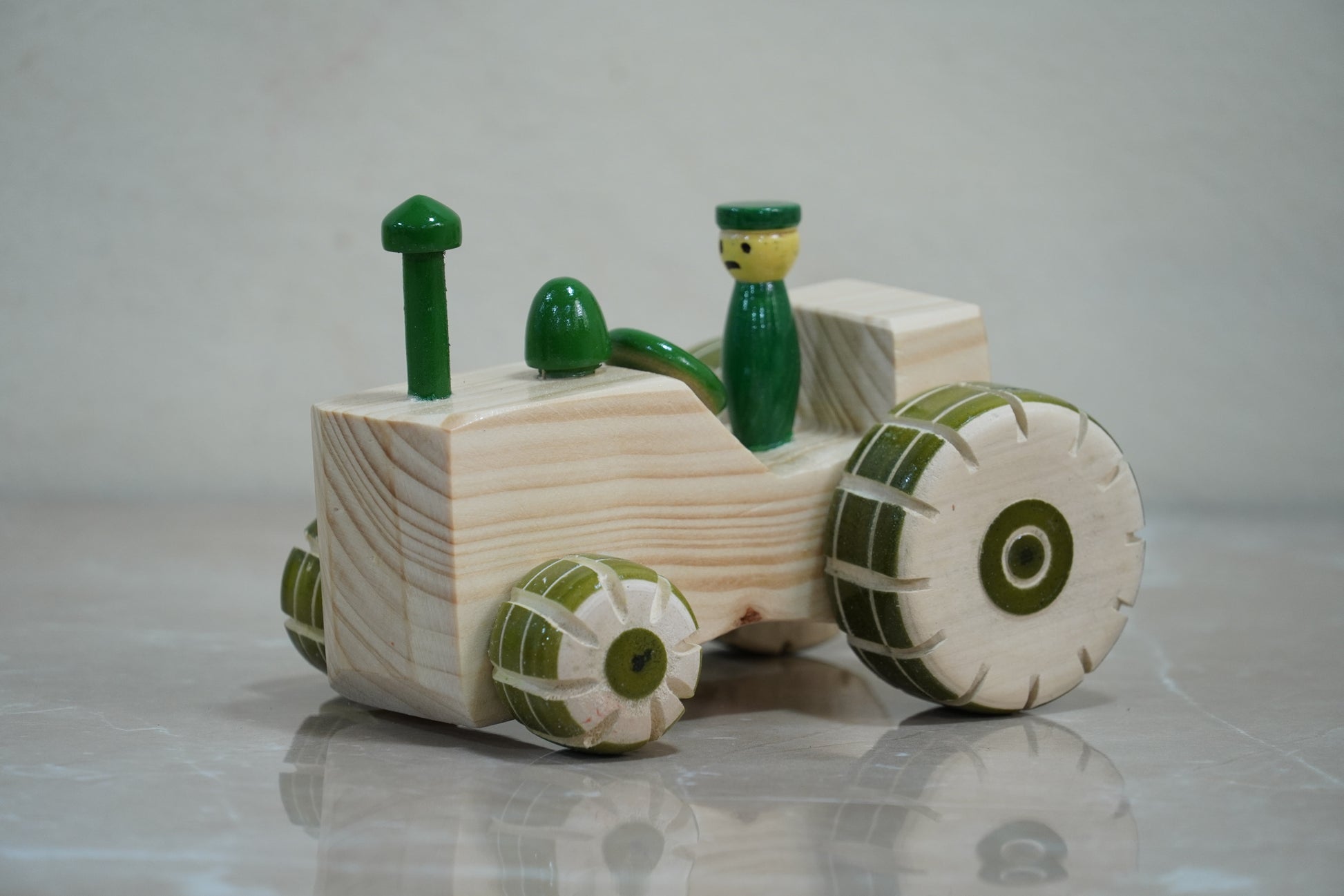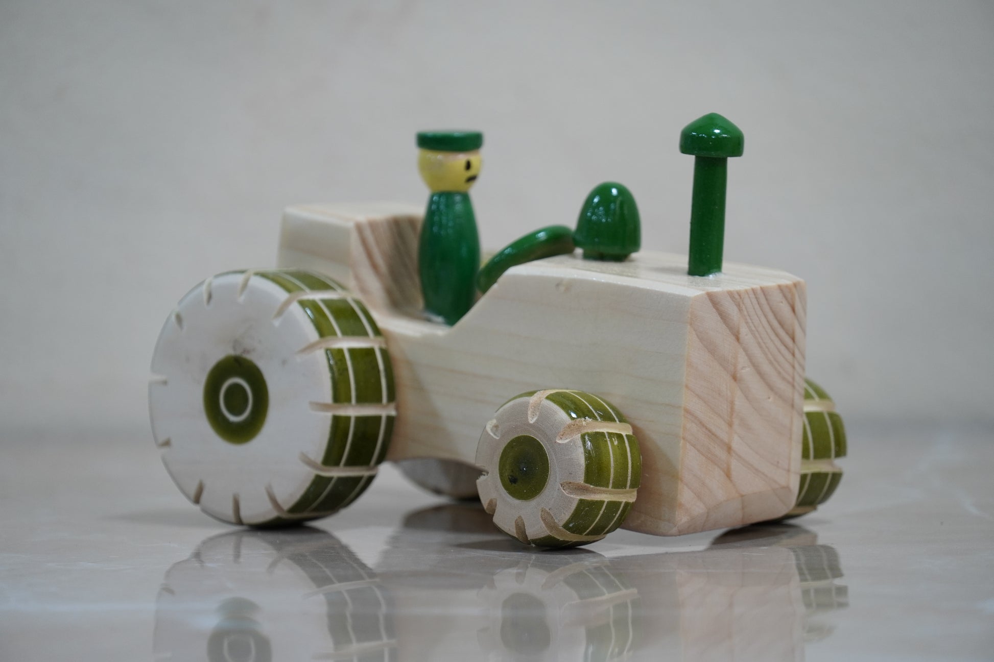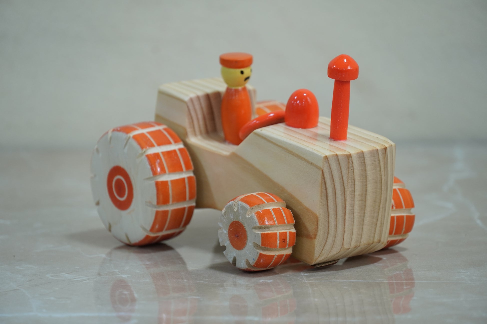 From farm animals to farm toys, every kid loves to own a cute little tractor that is sturdy and woody! Bring home this cute organic lacquered toy and make playtime engaging and fun!
