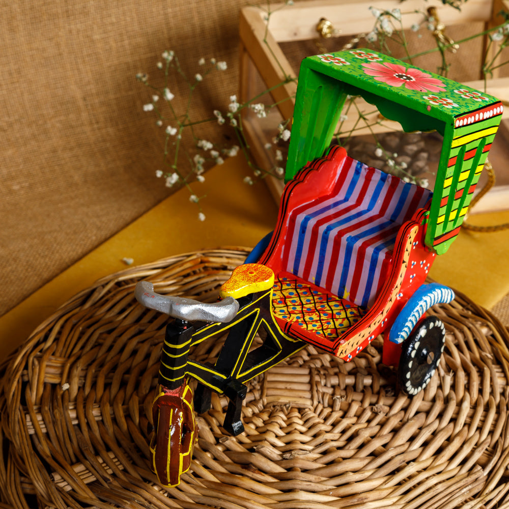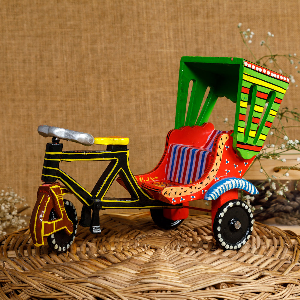 A lovely way to add a touch of quirk to homes, this wooden bicycle in wood is handpainted to perfection. It makes for a lovely gift and can elevate any space with its bright colors.