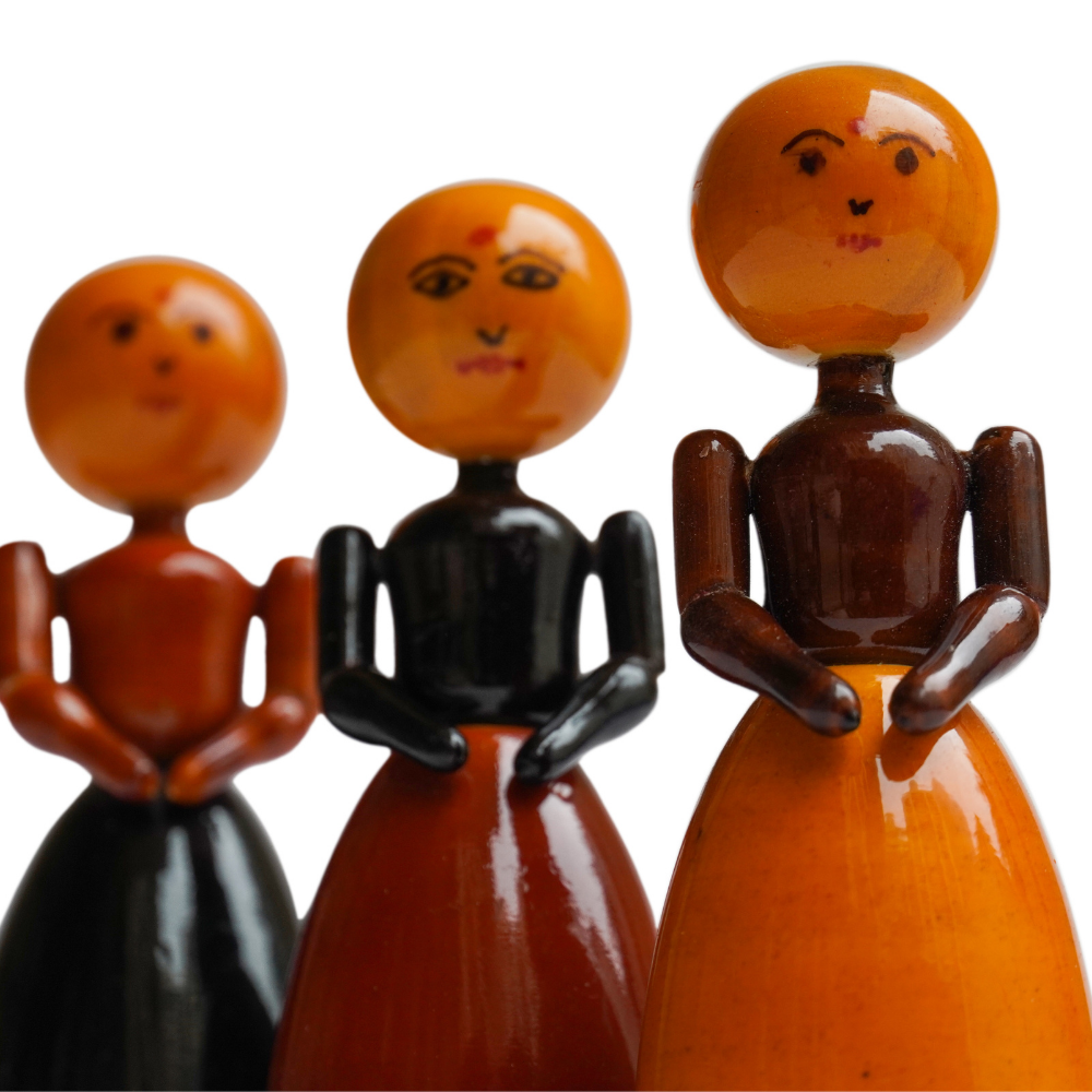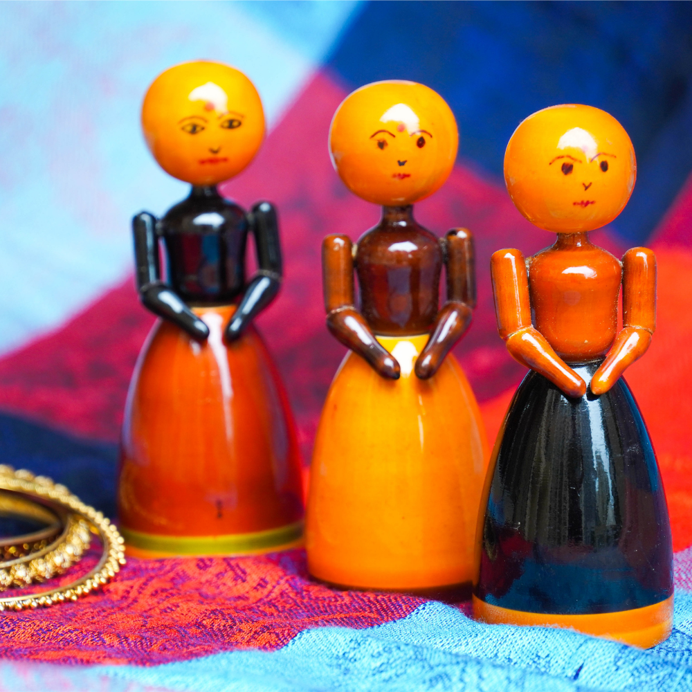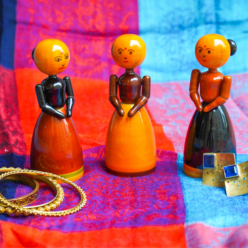 Beautiful wooden dolls that will set your childs imagination free. Its a great storytelling toy where the child can create his own folk stories and stay connected with our roots.